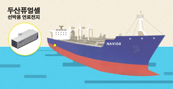 두산퓨얼셀은 나빅8와 ‘선박 추진·발전용 연료전지 공동개발을 위한 양해각서’를 지난 11월 9일 체결했다. 140여 척의 석유화학제품 및 원유 운반선을 보유한 나빅8은 싱가포르에 본사를 두고 있는 글로벌 해운회사다.