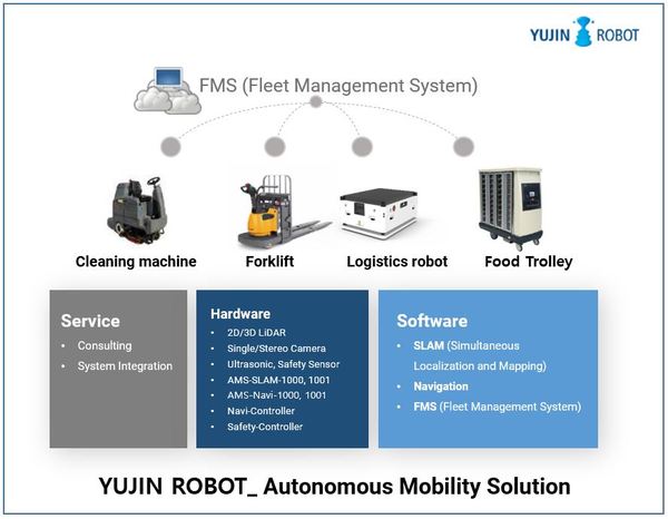 ▲ 유진로봇의 자율주행 솔루션 ‘AMS’은 다양한 산업군에서 자율주행 기술 적용이 가능하도록 지원하는 자율주행 토털 솔루션이다.자율주행 솔루션 전문기업 유진로봇이 4월 12일부터 16일까지 개최되는 세계 최대 산업전시회인 ‘하노버 메세 2021(Hannover Messe 2021)’에 참가해 모바일 플랫폼 등 자율주행 솔루션을 공개했다.