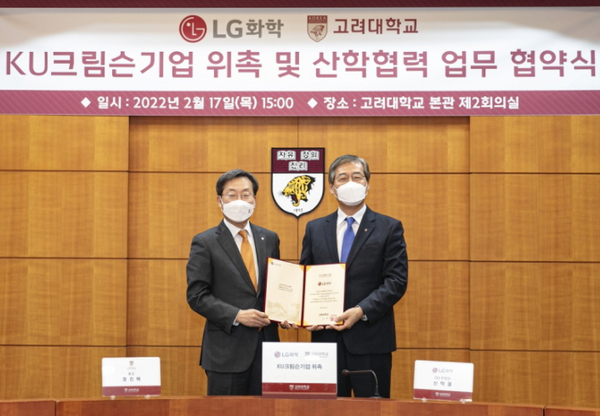 한편, 고려대는 이번 협약에서 LG화학을 고려대의 가족 기업인 KU크림슨기업으로 위촉했다. KU크림슨기업으로 지정되면 고려대로부터 최고 수준의 밀착형 산학협력 지원을 받게 된다.