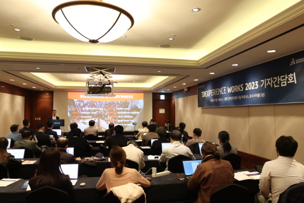 ▲ 다쏘시스템은 12일 인터컨티넨탈 서울 코엑스에서 내년에 출시하는 3D익스피리언스 웍스 2023을 발표하는 기자간담회를 개최했다.다쏘시스템은 12일 인터컨티넨탈 서울 코엑스에서 클라우드 기반의 통합된 환경에서 제조업 혁신을 지원하기 위해 내년에 출시하는 3D익스피리언스 웍스 2023을 발표하는 기자간담회를 개최했다.