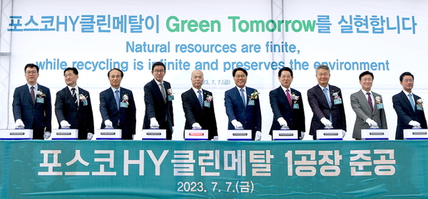 지난 7일 전라남도 율촌산업단지에서 열린 포스코HY클린메탈 이차전지 리사이클링 공장 준공식에는 최정우 포스코그룹 회장, 김영록 전남도지사, 김회재 국회의원, 정기명 여수시장, 정인화 광양시장, 천쉐화 화유코발트 회장, 허용수 GS에너지 사장 등이 참석했다.