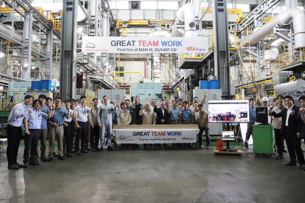 ▲ STX엔진, 친환경 선박용 엔진(L35/44DF CD) 시동식 성황리 마쳐STX엔진은 자사 및 MAN ENERGY SOLUTIONS와 공동 개발 중인 선박용 친환경 엔진 ‘L35/44DF CD’의 성공적인 1ST FIRING 시동식 행사를 9월 8일 성황리에 마쳤다고 밝혔다.