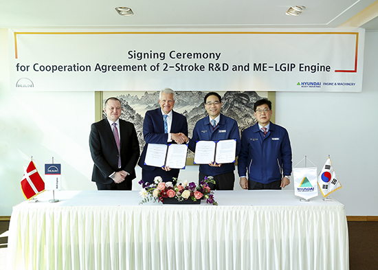 ▲ 만 디젤&터보와 ‘LPG 이중연료엔진 사업 MOU’ 맺어현대중공업이 LNG(액화천연가스)에 이어, LPG(액화석유가스)를 연료로 사용하는 차세대 이중연료엔진 사업에 나섰다.
