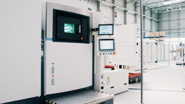 파렐의 프리미엄 에어로텍 사업장에 설치된 산업용 3D 시험생산 시설의 핵심은 레이저 4개가 장착돼 대형 금속부품 제조가 가능한 EOS사의 고속 3D 프린터 EOS M 400-4이다. EOS 공유모듈(EOS Shared-Module)이라는 방식의 모듈형 주변장비들이 이 산업용 3D 프린터를 중심으로 연동해 움직이도록 돼 있다. EOS M 400-4 프린터는 파우더 공급 장치를 갖추었고, 독립된 셋업 스테이션, 언패킹 스테이션과 연결되어있다. 그 결과 3D 프린팅용 알루미늄 분말 소재를 이 프린터에 투입하고 배출하는 작업, 새로운 빌딩 작업 준비를 위하여 시스템을 세팅하는 작업, 빌딩이 완료된 부품을 파우더 베드에서 언패킹 하는 작업은 실제 적층 제조 과정과 병행하여 독립적으로 수행될 수 있어 생산성이 상당히 향상된다. 적층 제조로 만들어진 부품은 보호 가스 용기에 담겨 자동으로 움직이는 자율 이동장치에 실려 자동화된 각 스테이션으로 이동하게된다.