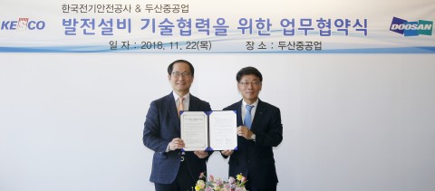 두산중공업이 한국전기안전공사와 발전설비 기술협력을 위한 업무협약을 맺고 발전설비 신뢰도 향상과 신재생 발전설비 안전관리 기준 강화에 나선다고 밝혔다.