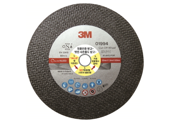 ▲ 3M 특허기술로 재탄생한 3M™ New PN1994 절단석한국쓰리엠이 최근 3M 특허기술로 독보적인 성능과 긴 제품 수명을 자랑하는 ‘3M™ New PN1994 절단석’을 출시했다. 이번 신제품은 20여 년간 업계 1위 제품으로 사랑 받아온 PN1994 절단석 제품에 3M의 PSG(Precision Shaped Grain) 기술을 적용해 한층 업그레이드되었다.
