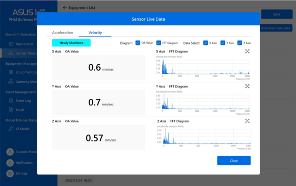 에이수스 IoT AISSENS 100AW는 정밀한 조기 이상 감지를 위한 진동 예측 솔루션이다. 6KHz의 미세한 감지를 체크하고 이를 쉽게 파악해 생산 장비의 이상 및 관리 모니터링을 통해 장비의 유지 관리 및 미연의 사태를 방지하도록 설계됐다.