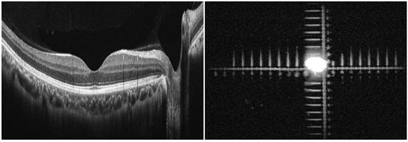 ▲ 안과용 망막진단장비(OCT)로 촬영한 사람의 망막(좌)과 표준 안구팬텀(우) 영상
