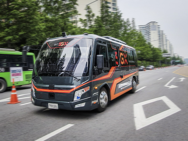 ▲ SK텔레콤 5G 자율주행 버스가 서울 상암 DMC 지역을 5G · V2X 융합 자율주행으로 달리는 모습SK텔레콤은 22일 ‘상암 자율주행 페스티벌’에서 5G 자율주행 핵심 기술 첫 선을 보인다. 상암 5G 자율주행 테스트베드의 공개와 함께 ‘상암 자율주행 페스티벌’에서 5G ·V2X 융합 자율주행 기술 시연에 나선다고 밝혔다.